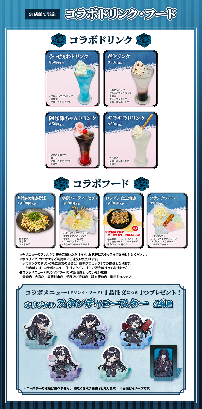 カラオケ設置全店(コラボメニューはカラオケルームにて)販売