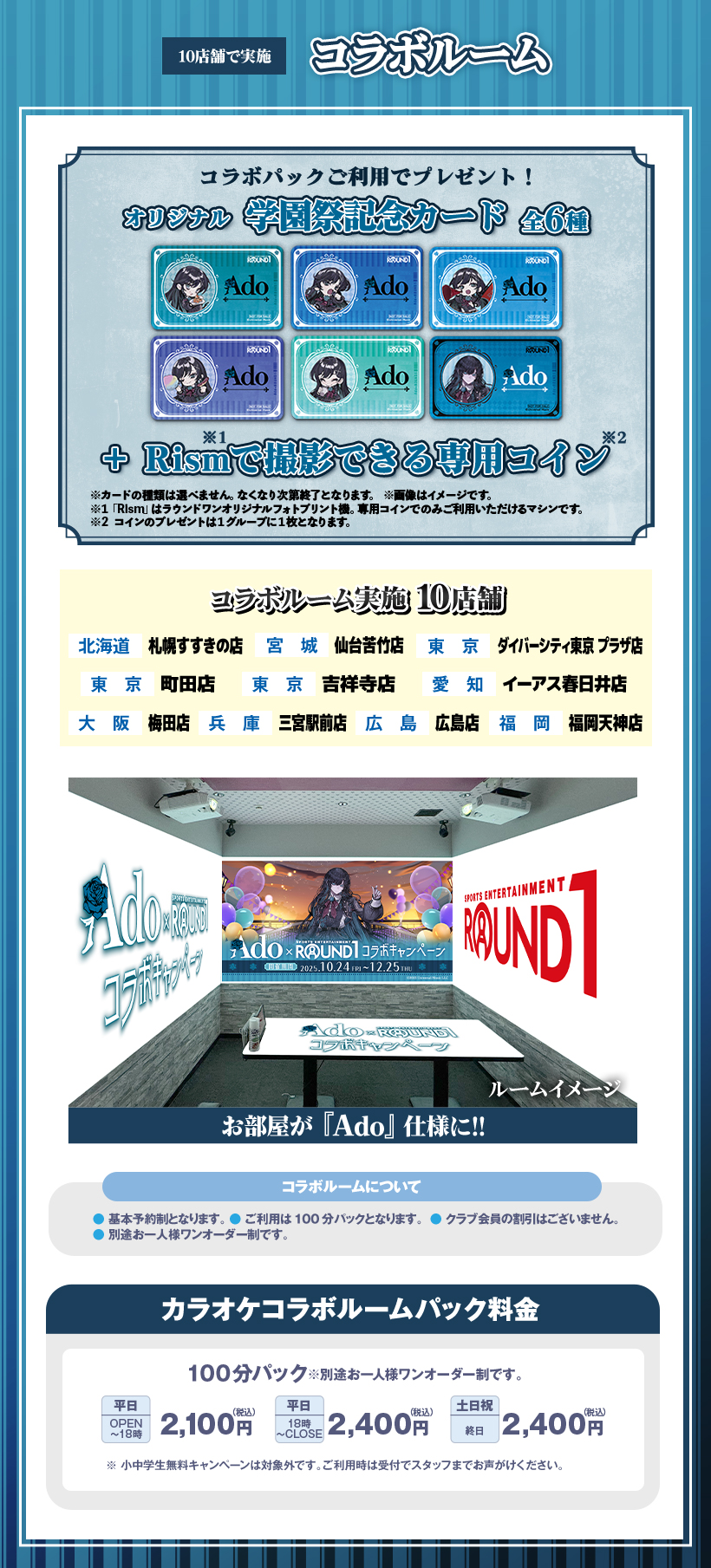 ※ラウンドワンスタジアムららぽーと新三郷店ではコラボルームの展開はございません。
