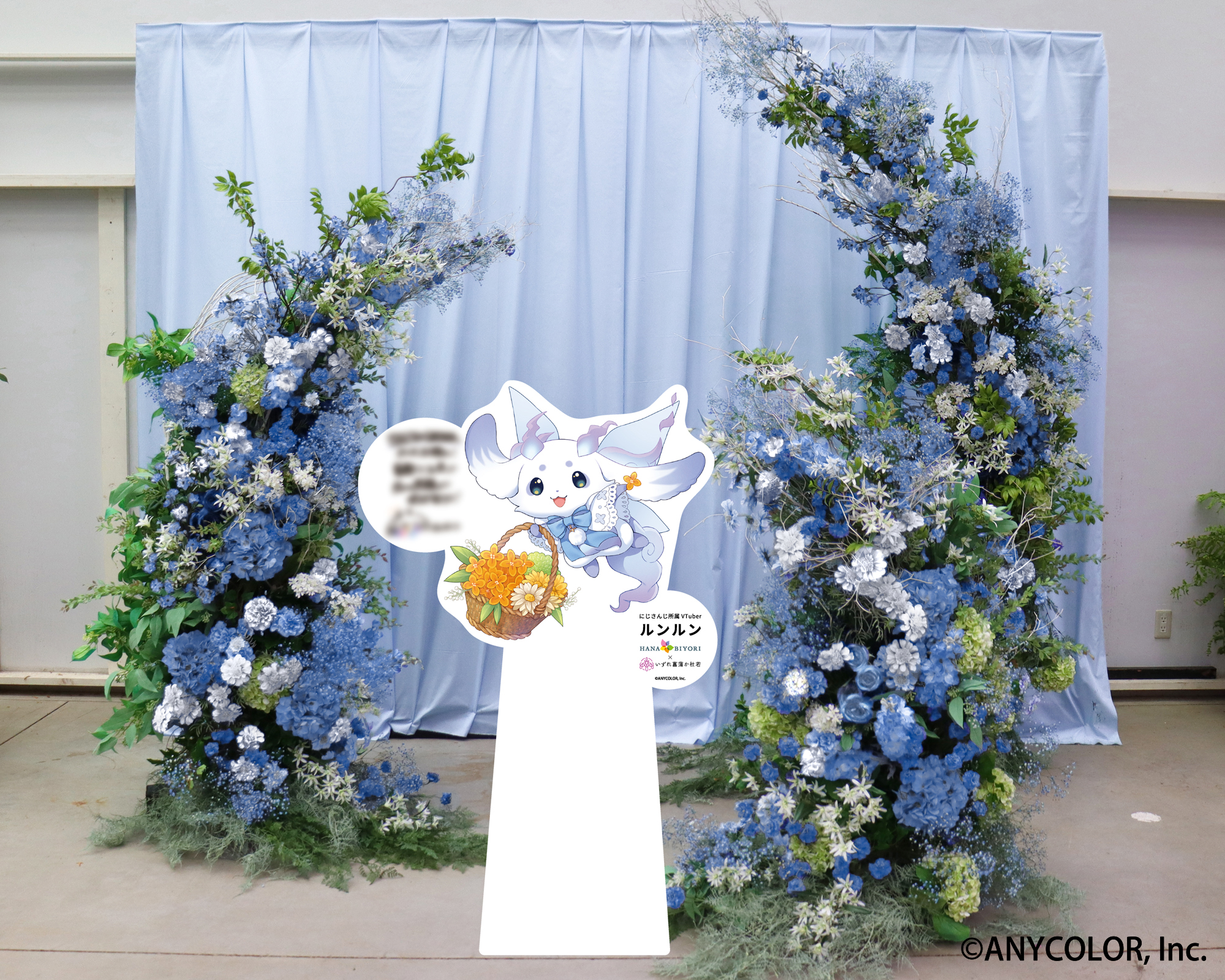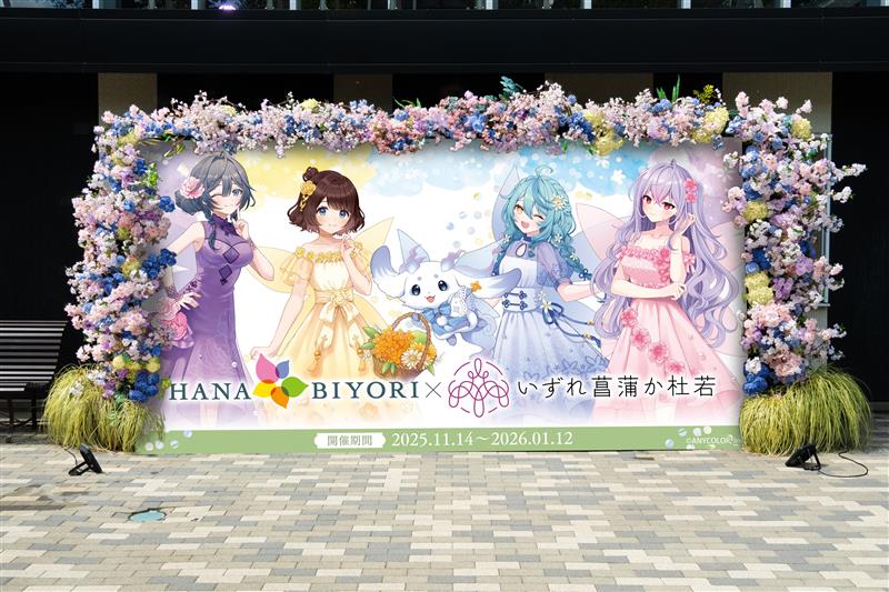 温室入口にはメインビジュアルを使用した特大ターポリン、HANA・BIYORI館内には撮り下ろしビジュアルを使用したキャラクターパネルと彩とりどりの花でデザインした特別な装飾となっております。